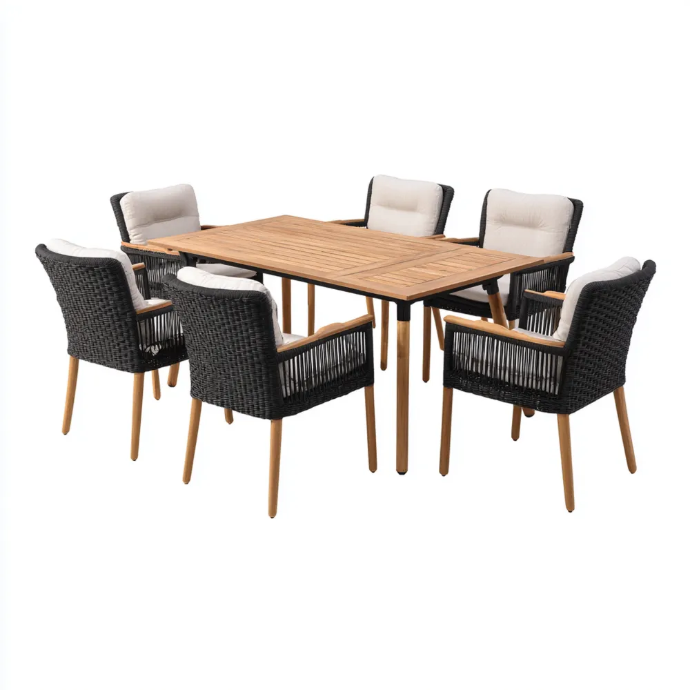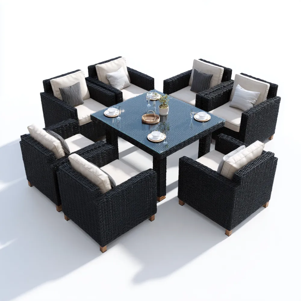 Garten-Esstisch-Set Polyrattan 8-teilig - Schwarz - Modernes Design 150 x 90 x 75 cm€144,95