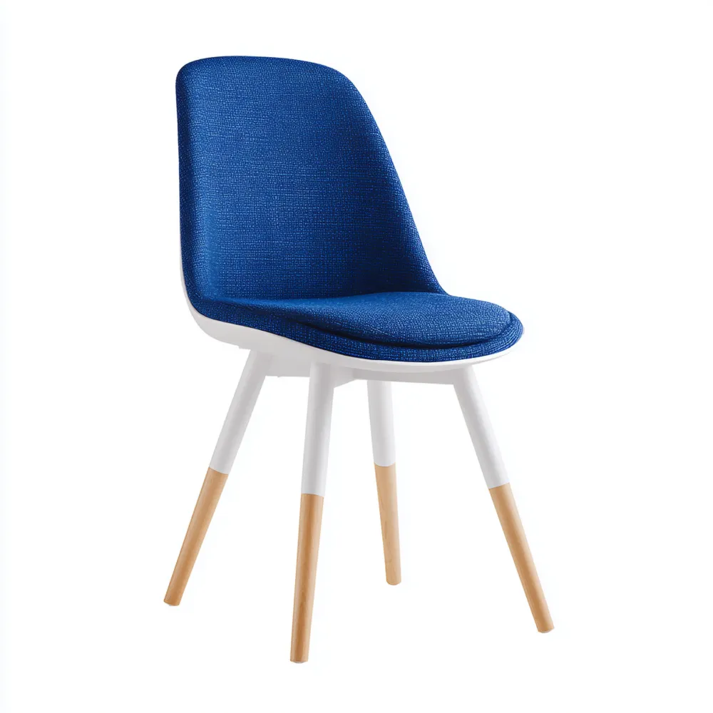 Material und VerarbeitungDer Stuhl verfügt über einen robusten Stoffbezug in Blau, kombiniert mit hochwertigen Holzbeinen.